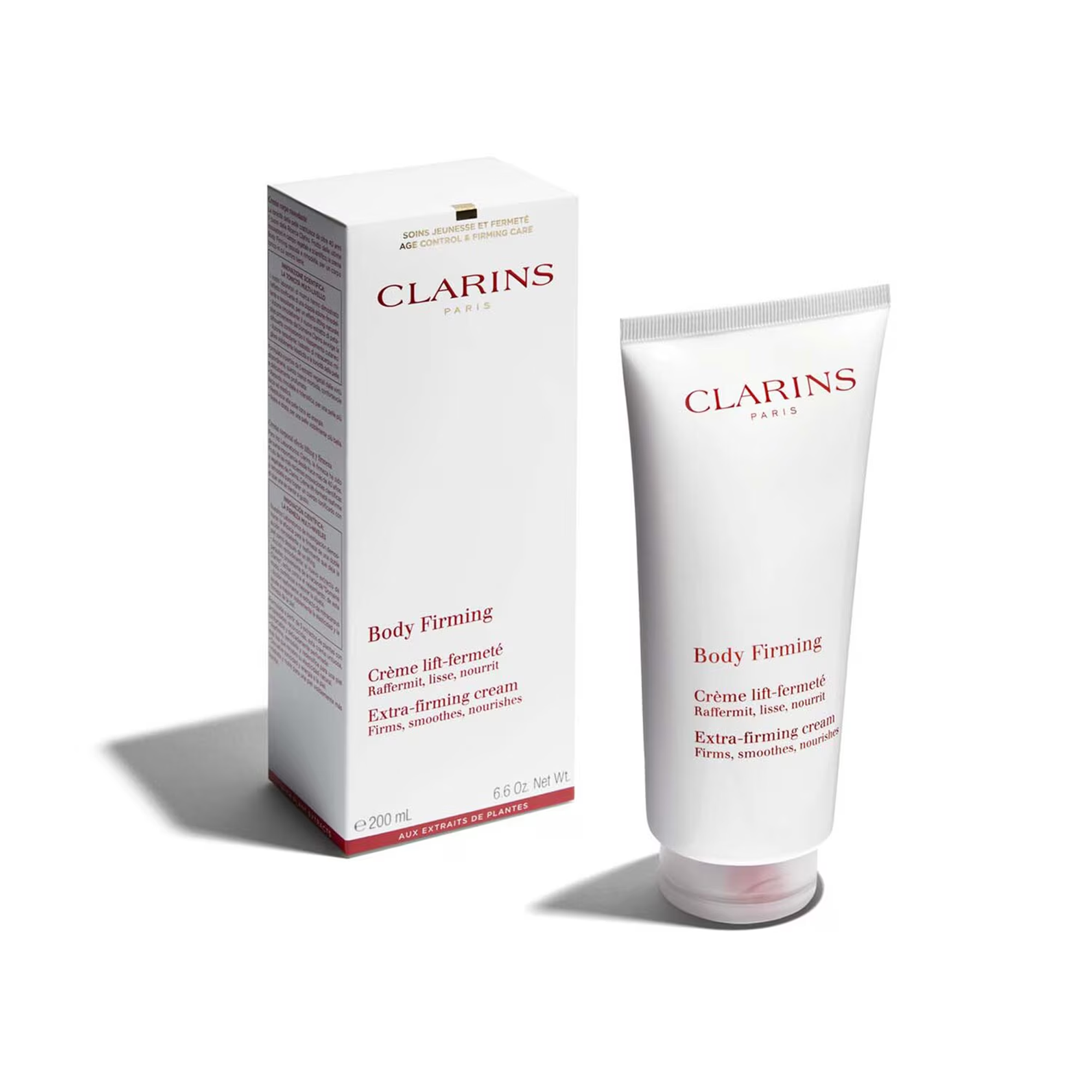 - Clarins Body Firming Extra-Firming Sıkılaştırıcı Krem, tek bir adımda cildinizi canlandırarak daha tonlu bir görünüm kazandıran, besleyici ve yaşlanma karşıtı bir vücut kremidir.