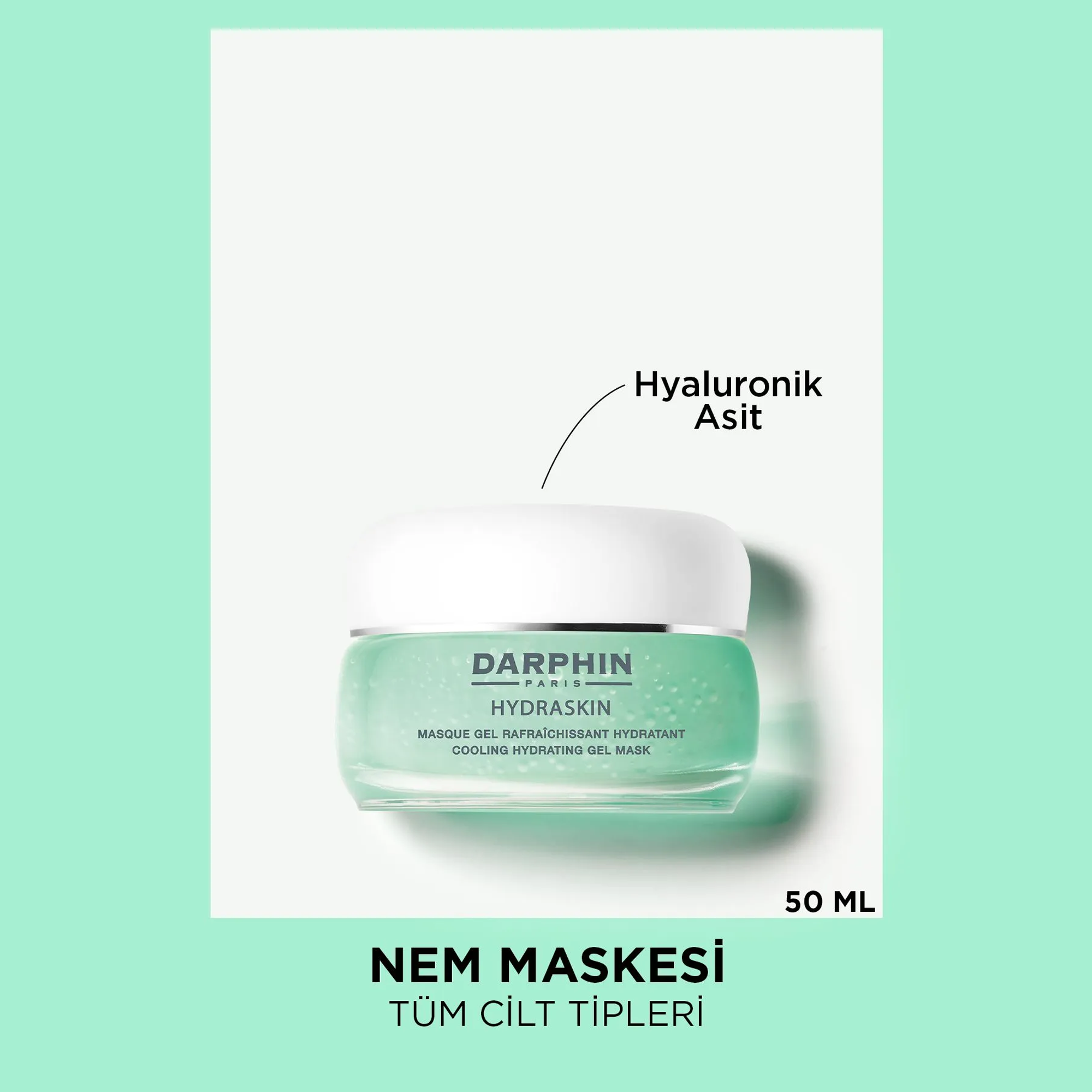 - Darphin Hydraskin Cooling Hydrating Jel Maskesi, yorgun ve susuz kalmış ciltler için geliştirilmiş hafif yapılı bir jel maskedir.